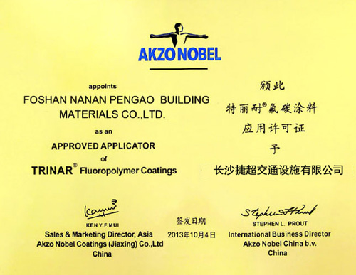 • 氟碳噴涂頒發(fā)證書